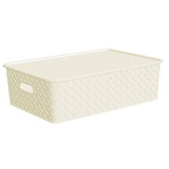 КОРЗИНА ДЛЯ ХРАНЕНИЯ С КРЫШКОЙ "БЕРЕСТА" 3 Л 23,5*17,3*10,5 СМ (СЛОНОВАЯ КОСТЬ) (1/16) "ВИОЛЕТ"